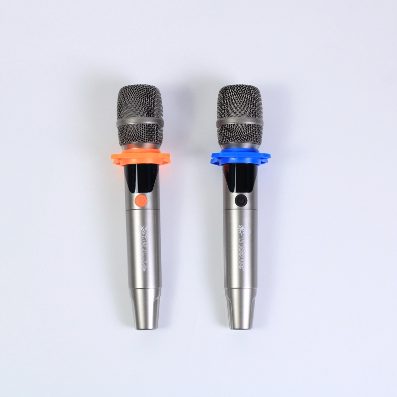 - 2 Microfones sem fio: O aparelho acompanha 1 receptor de sinal e 2 microfones sem fio com sistema de pontuação em tempo real aliada ao iFun (linhas), "acertando" o tom da música com a sua voz. Quanto mais sua voz se manter na melodia e no tom correto, maior será a sua pontuação!